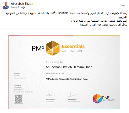 الممثل والمنسق الإقليمى لمنهجية الإتحاد الأوروبى لادارة المشاريع PM² فى الشرق الاوسط وشمال إفريقيا